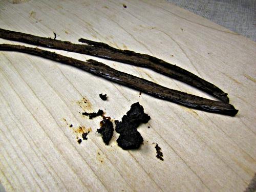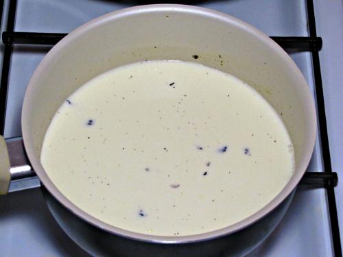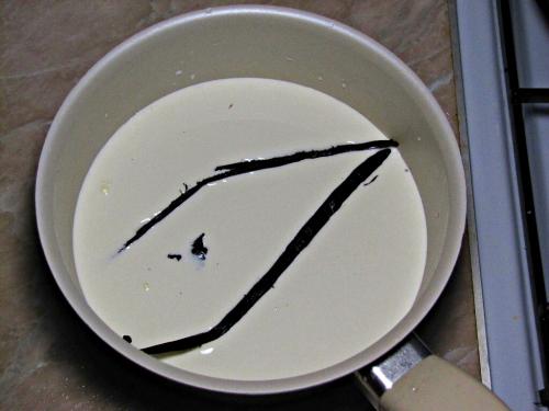 Когда сливки начнут кипеть, достанем половинки стручка - он уже отдал свой запах и больше не понадобится.