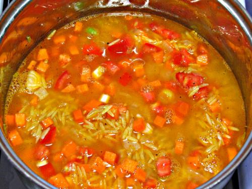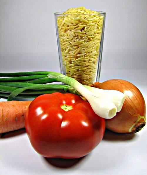 У меня пачка таких макарон (формы “орцо”) лежала еще с прошлого года и руки не дотягивались. Макароны эти короткие, формой похожи на рис, но немного длинее. Если у вас таких нет, не страшно. Возьмите любые мелкие макароны твердых сортов пшеницы.