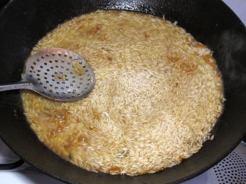 Через полчаса вынимаем чеснок и перец, правим соль. Зирвак должен быть слегка пересоленным - ведь наш рис пресный.