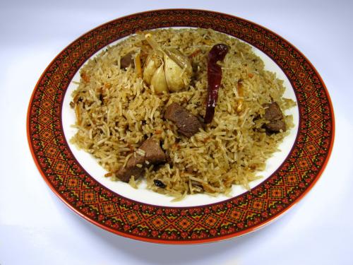Открываем наш уже упревший плов, хорошенько перемешиваем шумовкой, выкладываем на большое блюдо и зовем к столу семью или друзей, а лучше - и тех, и других. Плов - это не еда для одного человека, он собирает всех за столом. И конечно же, лучше всего запивать плов горячим чаем - он не даст жиру застыть в желудке, и вам будет хорошо и приятно после трапезы.