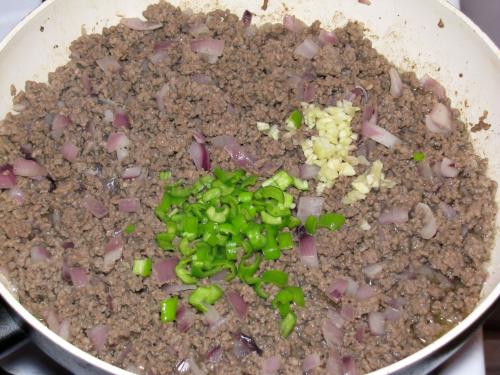 Добавим измельченные перец и чеснок, перемешаем и дождемся, когда они пустят запах.