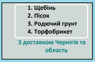 Щебінь. Пісок. Родючий грунт. Торфобрикет. З ДОСТАВКОЮ ЧЕРНІГІВ ТА ОБЛАСТЬ. Тел. 063-875-28-70 Ярослав.