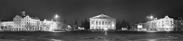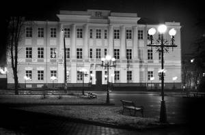 Что можно сфотографировать на Красной площади? Ну во первых, черниговский драматический театр им.Т.Г. Шевченко, он хоть как то подсвечен, а в дни, когда в театре идет пьеса или проходит концерт включают праздничное освещение с белыми, голубыми, сиреневыми фонарями, которые создают необыкновенную игру света и тени на белоснежных колонах и крыше здания театра. И два жилых дома рядом, они выполнены в стиле немецкой архитектуры, так как после войны эти дома отстраивали немцы, которые приезжали сюда, дабы отбыть повинность за причиненный городу ущерб.