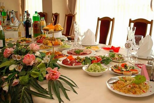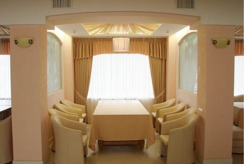 В ресторане работает музыкальный коллектив. По желанию клиента здесь помогут с выбором репертуара, организацией музыкальной программы, украшением зала, заказом фотографа и видеосъемки.