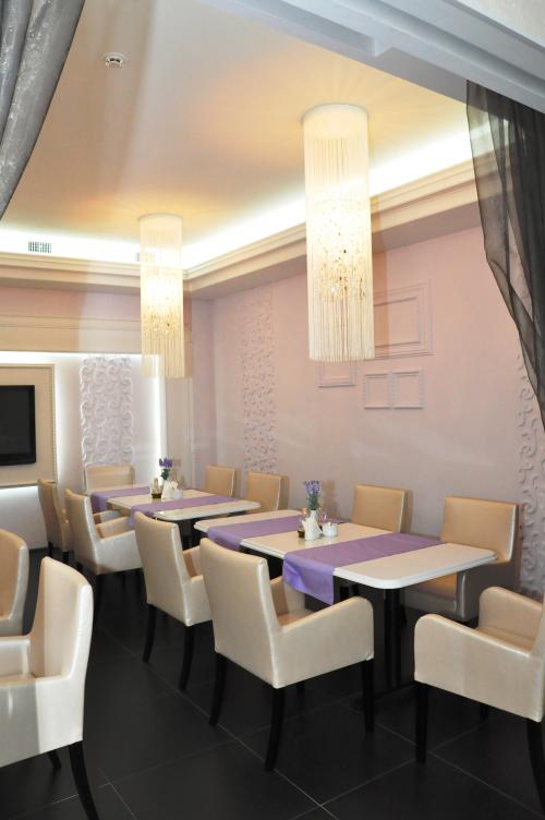 Меню состоит из европейской и «паназиатской кухни», суши.