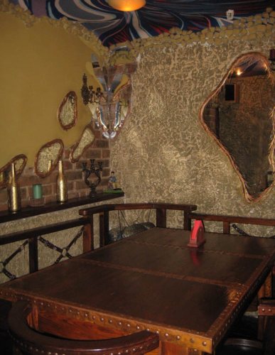 Кухня представлена преимущественно европейскими блюдами. Фирменное - салат из морских деликатесов с острова свободы. Фирменный коктейль - "Мохито".