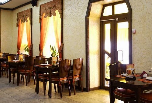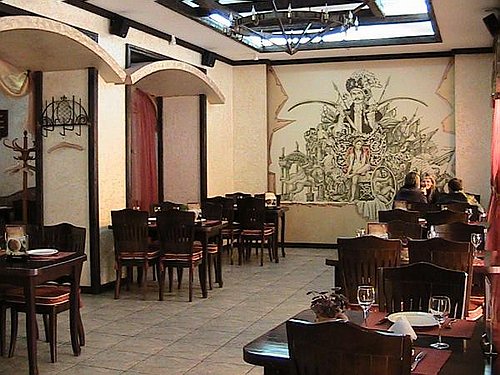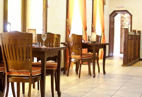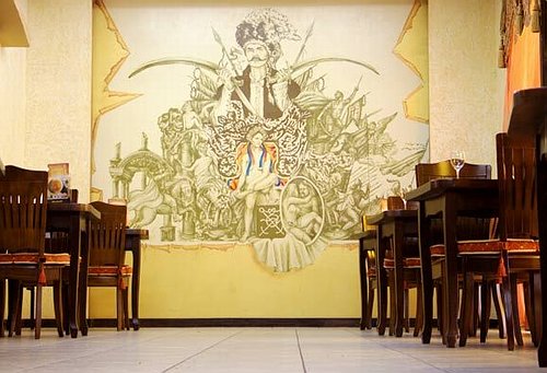 Кухня украинско-европейская с элементами домашней. Фирменные блюда: «Торбинка з телятиною», «Дорада», десерт «Гетьман club». Вы можете заказать выездную кухню или понравившиеся блюда с собой.