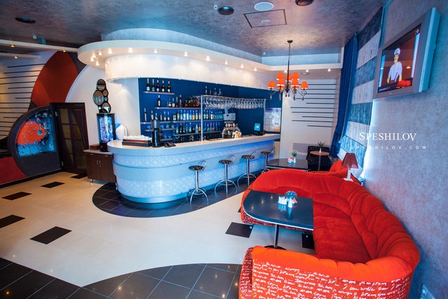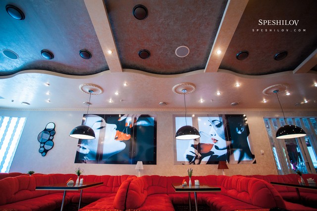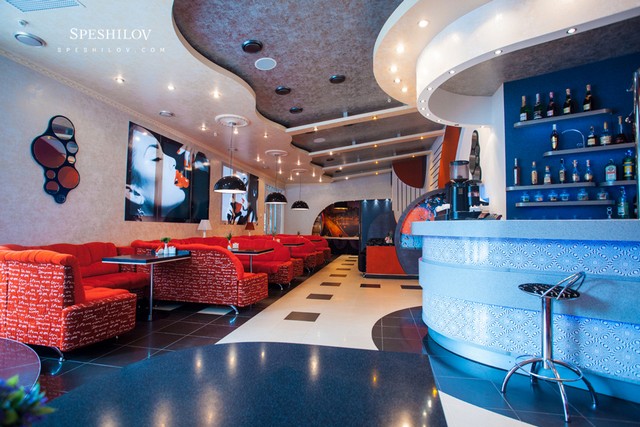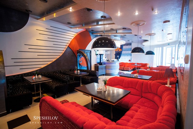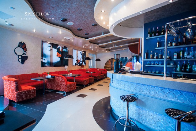 Основной зал на 45 посадочных мест привлекает внимание гостей оригинальной планировкой и уютными мягкими диванами. Уютный банкетный зал на 15 человек позволяет организовать небольшую конференцию или презентацию, решить деловые вопросы, отпраздновать семейный праздник, провести романтический вечер. Гордость кафе - летняя терасса с кальянным залом - небольшой оазис тропиков с настоящими фонтанами, зелёными деревьями и пальмами.