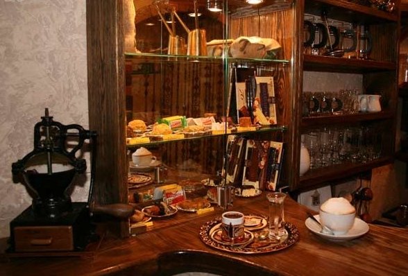 В кафе можно купить чай и кофе на развес, красивые сервизы и другую посуду.