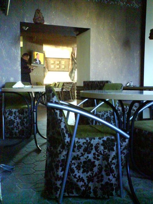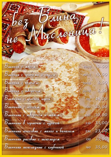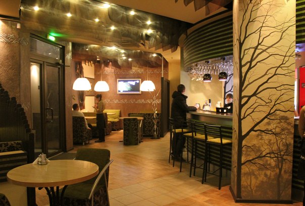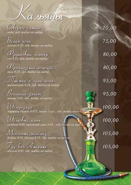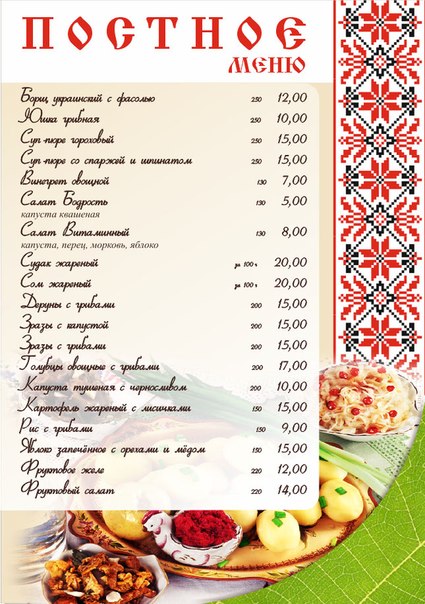 Средний чек - 35 гривен. Из первых блюд в меню имеется: уха, солянка, суп гороховый, борщ, крем-суп со спаржей и шпинатом. Салат: из капусты, винегрет, «Кутузов», «Подольский». Горячее: котлета домашняя, рыбная, курица, свиной гуляш. Гарниры жареный картофель, макароны с овощами, рис, гречка. Напитки: узвар, чай, кофе. Блюдо от шефа — сибас Темпура — 95 гривен. Есть пицца - средняя цена 40 грн.