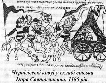 Чернігівські ковуї у складі війська Ігоря Святославича. 1185 рік. Розташована на межі Заходу і Сходу, Україна упродовж кількох тисячоліть - від доби бронзи і ледь не до кінця XVIII ст. - була зоною постійних контактів і співіснування осілих землеробів та скотарів-кочівників. Неозорі українські степи, що на півночі сягали території сучасної Чернігівщини, з їх практично необмеженими запасами зеленої маси, створювали ідеальні умови для ведення кочового господарства. Водночас, родючі степові чорноземи одвічно вабили землеробів, відтиснутих більш войовничими сусідами в непрохідні нетрі поліських лісів і боліт. Користуючись кожним послабленням кочівників-номадів, вони робили відчайдушні спроби колонізувати ці простори, досягаючи інколи Причорномор'я. Та кожного разу нова хвиля безжальних вершників змітала ці вогнища цивілізації, нещадно випалюючи все на своєму шляху.