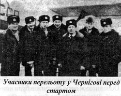 "Українські пілоти Петро Невойт і Володимир Сафонов, супроводжувані штурманом, бортінженером і запасом горілки, пролетіли більше 6 тисяч миль з Чернігова, міста, розташованого північніше Києва, через Сибір і російський Далекий Схід у Ном, а потім в Анкоридж:... "