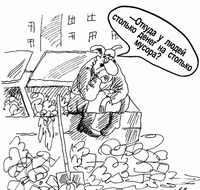 Стою на остановке. Подъезжает машина, мусоровоз, из нее выходит грязный худой, зачуханный дяденька в жилете. У него черно-седые взлохмаченные давно немытые волосы, всколоченные – это от жары, наверное. Но внешний вид мусорщика не имеет значения, правда? Главное – добро, которое он собирается творить на радость людям )). Подходит к мусорной урне. А у нас на остановке она такая цементная, серая с голубым или красным, не помню, ободочком, без дна, их, помнится, какой-то кандидат или желающий стать кандидатом устанавливал пару лет назад. Правда, может, я что-то и путаю. Но это снова неважное отступление.