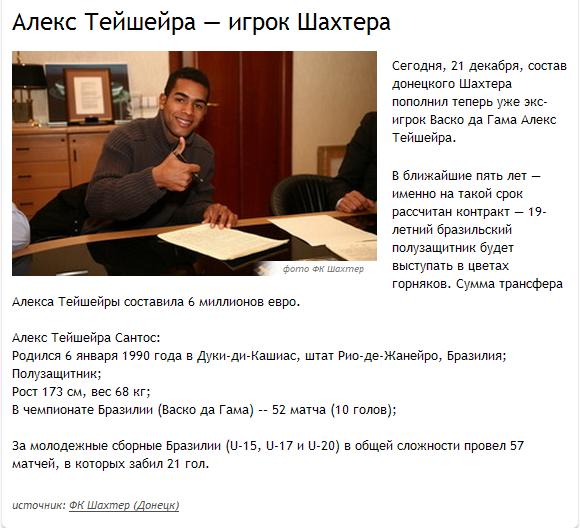 Ну и вот первый трансфер на территории Украины... вполне добротный парниша... молодой...перспективнй... в отличии от тех парней которые были" молодыми и перспективными" в составе киевлян - играет на высоком уровне... игрок молодежной сборной Бразилии... на У-20 класно играл... отдавал великолепные передачи... и то, что он теперь игрок донецкого гранда... это говорит о том, что парниша многого стоит... ведь смотрите...последнее время селекция донецкого клуба в латиноамериканском регионе роботает на все 12 баллов! Молодцы... Ильсиньо... Виллиан... Луис Адриано, - ну и два старожила... Фернандиньо и Жадсон... красавцы... когда то когда приходил молодым... без опыта игры на высшем уровне..а сейчас играет так, что товарищи европейцы "Милана", "Челси"... просто сохнут по Ферни... но пока мы говорим "нет"... донецкие парни оцениваются теперь десятками милл ...