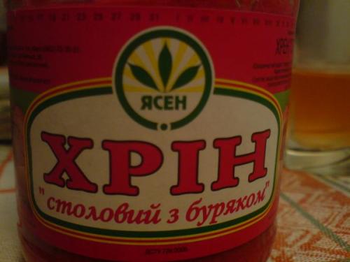 Дома, через пол часика, решили мы попробовать ядреную кашицу ХРЕНА.