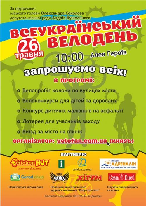 Завтра состоится всеукраинский Велодень.