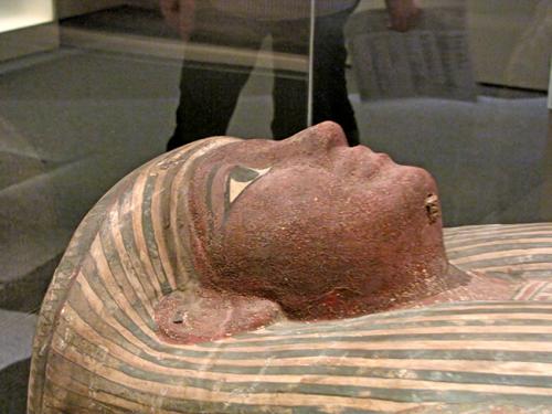 «В день погребения фараона обязательно собирались все родственники, придворные, сановники. Они выстраивались в длинную процессию, во главе которой следовал наследник фараона. За ним шли в строгом порядке высшие чиновники, вельможи, жрецы и жрицы. Саркофаг с мумией везли на санной повозке, запряженной быками. Его внутренности в канопах везли отдельно позади саркофага. Погребальные дары везли вслед за саркофагом и канопами. Наемные плакальщицы заученными жестами изображали невыносимую скорбь и горе, рвали на себе одежды и посыпали головы дорожной пылью.