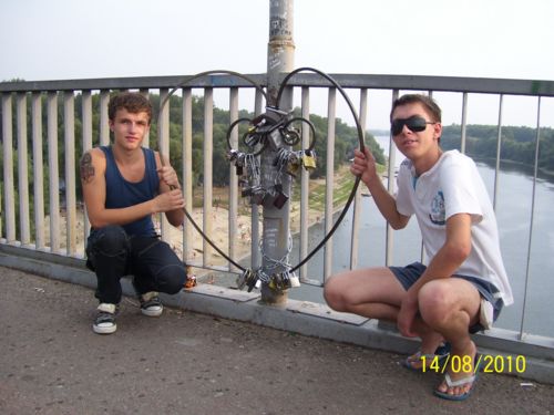 На этом месте свою любовь закрепляют молодые. Такое видели в Харькове, в Киеве, в Днепропетровске. На большом сердце замков штук 400. На маленьком – 30.