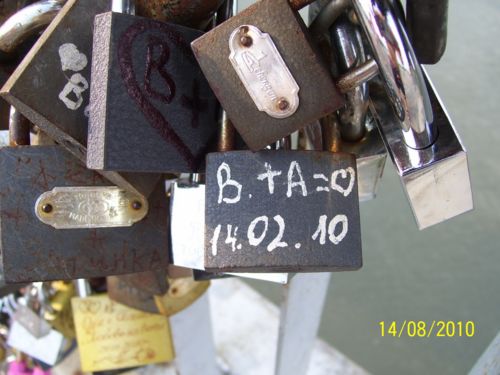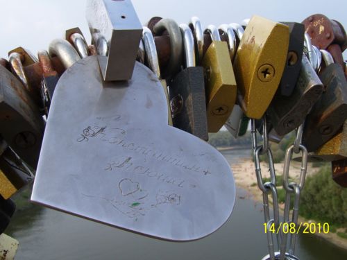 Сюда приходят влюбленные и в знак любви цепляют замочки. Мы тоже когда-нибудь придем. Подобное видели в Киеве на каком-то мосту. А замков на сердце: