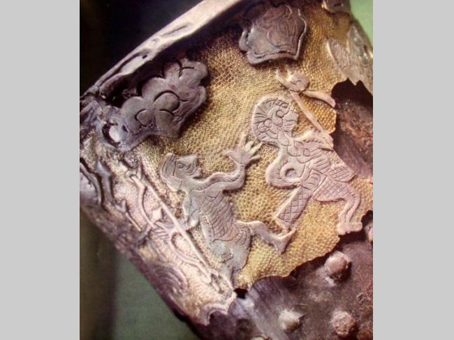 Интересно, что для доказательства своей правоты обе стороны обычно обращаются к одному и тому же источнику – сказочному сюжету, изображенному на серебряной оковке ритона – турьего рога, который был найден в кургане.