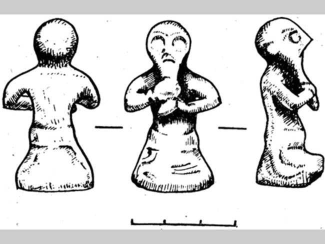 Далее, «вещая птица», в которую стреляет Кощей, совершенно не обнаруживает ясной композиционной связи с фигурами людей. Выпущенные стрелы направлены не в ее сторону, а в противоположную. Птица явно не является источником опасности для людей, которые бегут не от нее, а к ней, голова же ее повернута в сторону от людей. «Женская» фигура по Рыбакову - на самом деле в штанах и вооружена луком – скорее все же мужчина.