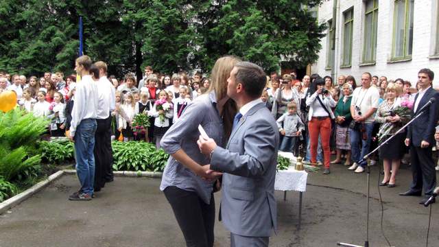 Артем Стах перецеловал всех выпускниц и дарил деньги в школе №20 (фото)