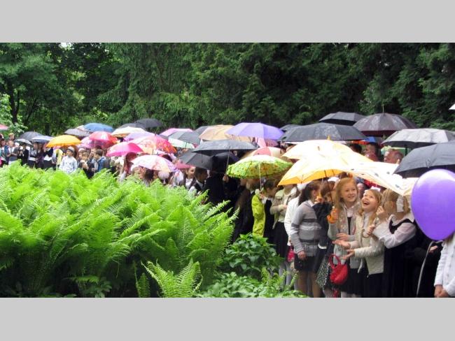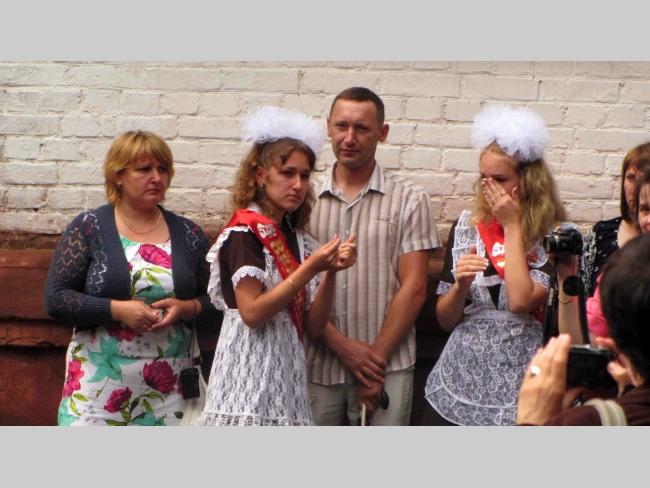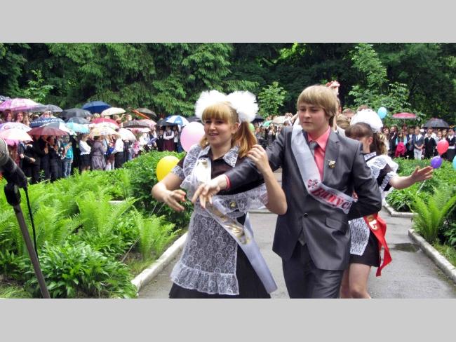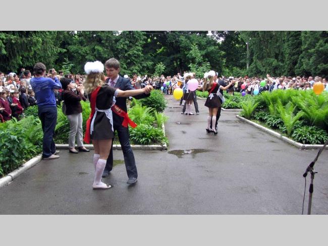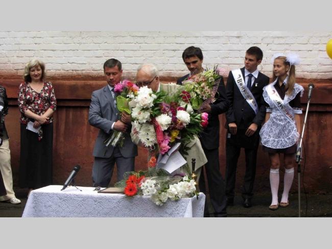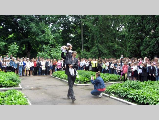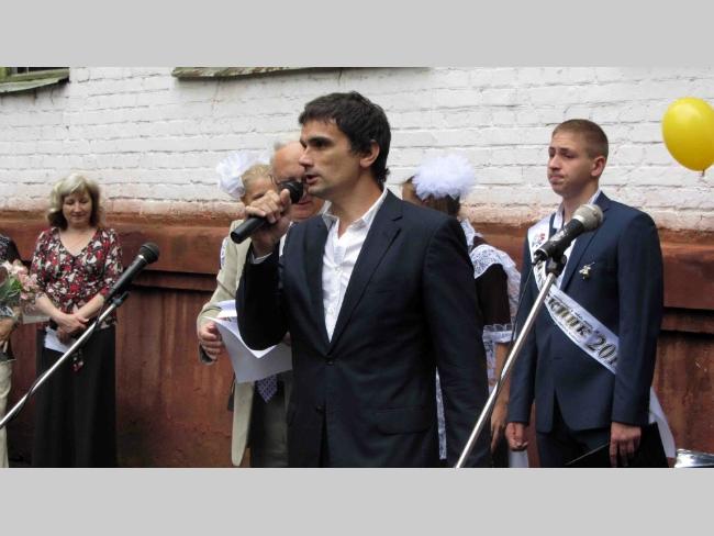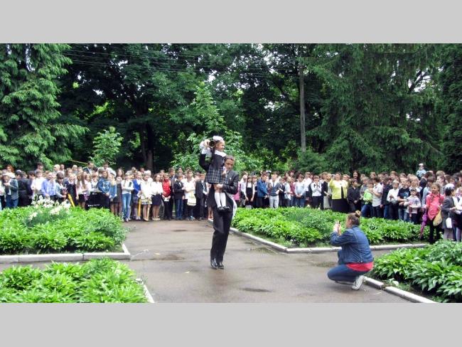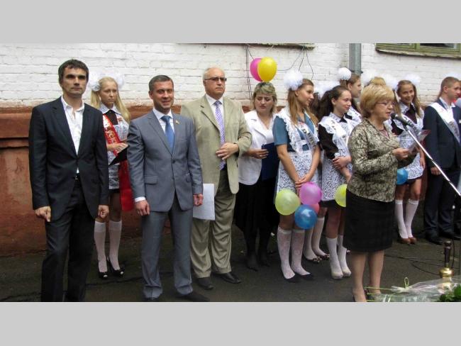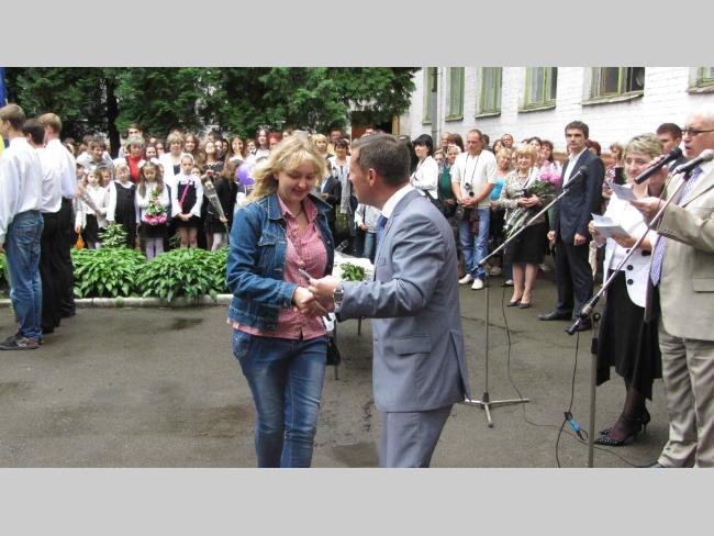 В этой школе все проходило практически по тому же сценарию, что и в двух предыдущих: поздравление директора школы Николая Конончука с окончанием учебного года. От имени Валерия Дубиля учеников и их родителей поздравила Людмила Соколовская. А Евгений Криворучко, выпускник школы прошлых лет, передал поздравительную грамоту и бесплатные пригласительные в ЦПКиО от Владислава Атрошенко.