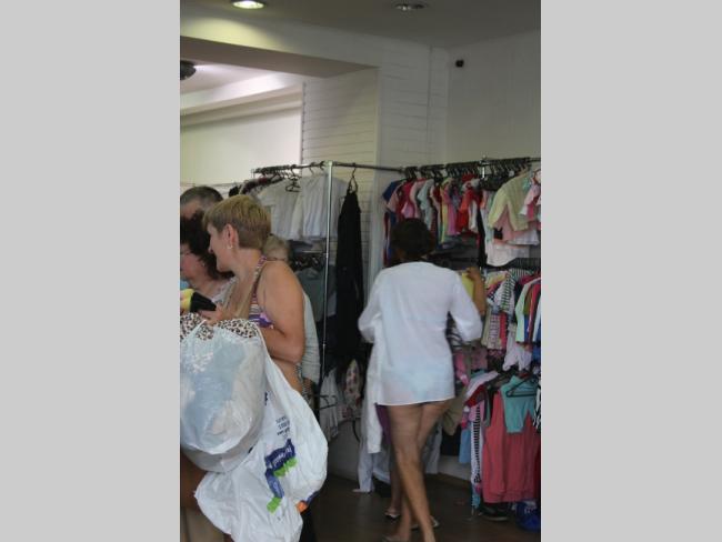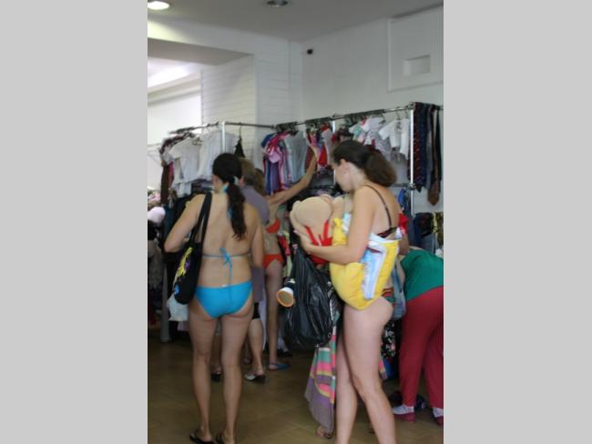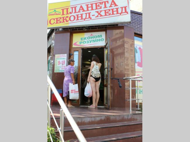 Безумная очередь полуголых покупателей с 8 утра штурмовала сегодня магазин «Планета секонд-хенд», что около торгового центра «Прогресс» по проспекту Победы. Сложно было поверить своим глазам: бабушки в купальниках тащили за руку по трое внуков, дедушки в плавках, хватающие с полок плюшевых медведей, молодые девушки и дамы внушительного возраста дефилировали по магазину в такой одежде, в которой обычно ходят на пляж.