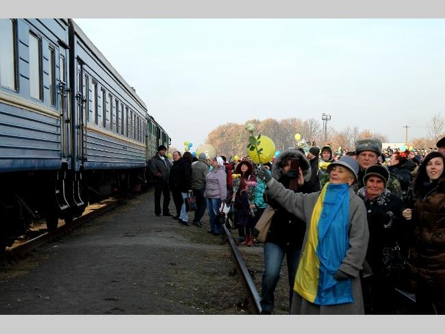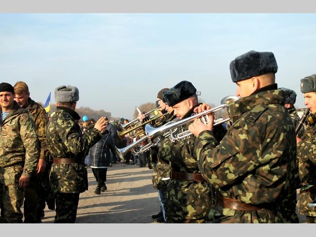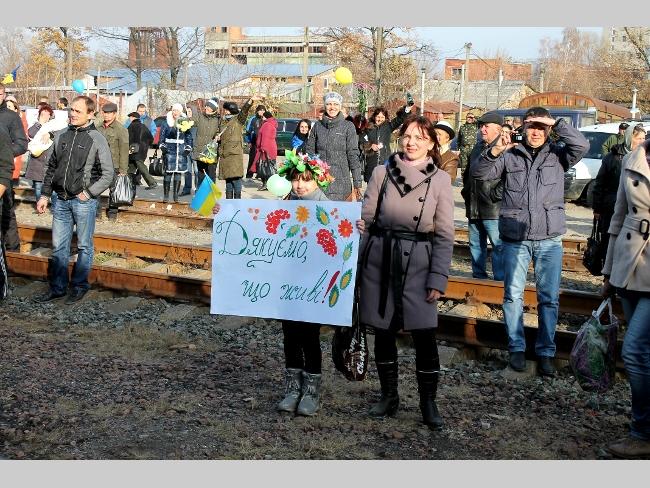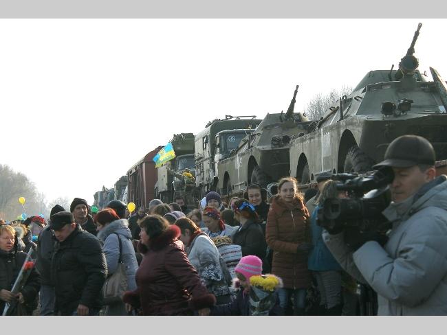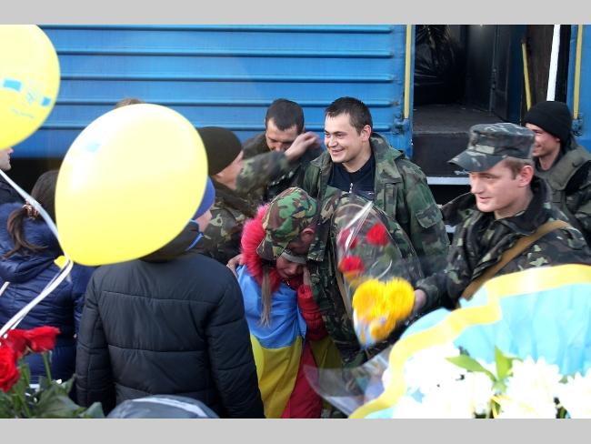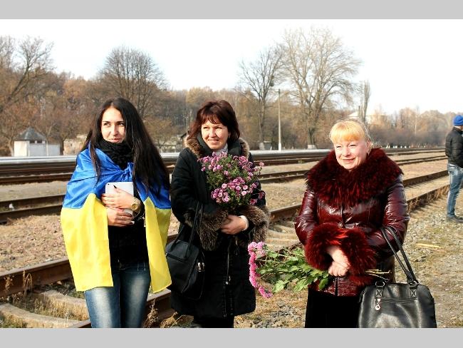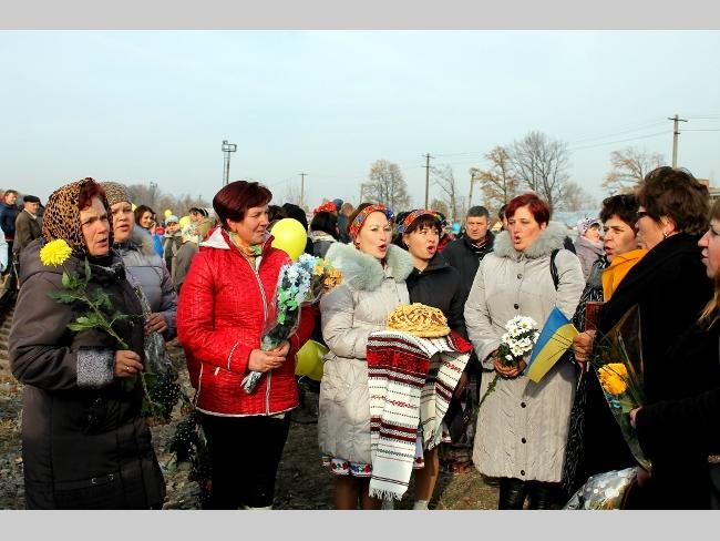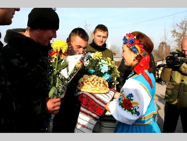 Бойцы батальона вместе с техникой прибыли на железнодорожную станцию Чернигов-Северный. Около тысячи жителей города пришли на станцию с цветами и желто-синими флагами, чтобы встретить героический батальон.