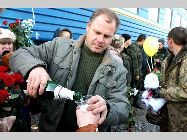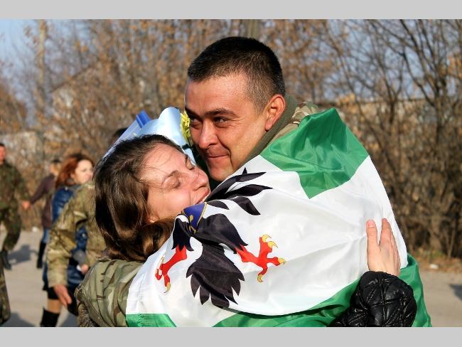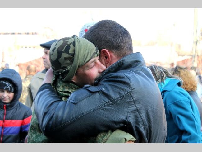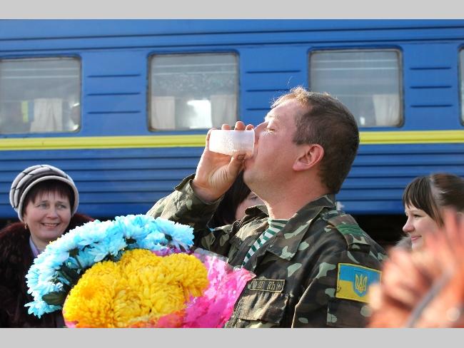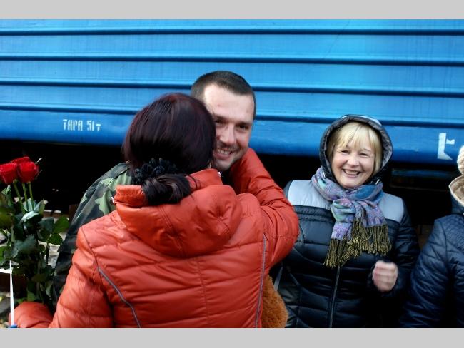 Состав с бойцами и техникой, под приветственные возгласы, медленно и гордо прибывает на станцию. Героев встречали с духовым оркестром. Слезы радости от встречи с родными и близкими, объятия и брызги шампанского, все это смешалось в праздничной и радостной атмосфере.