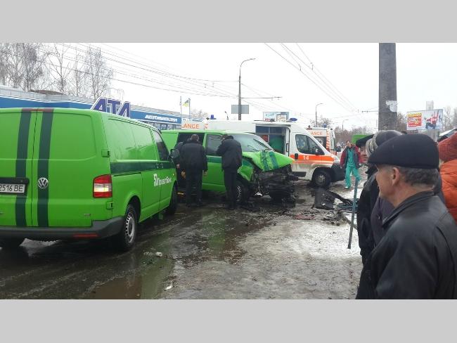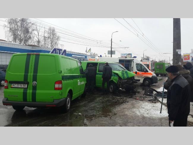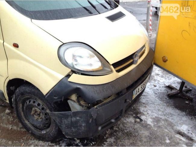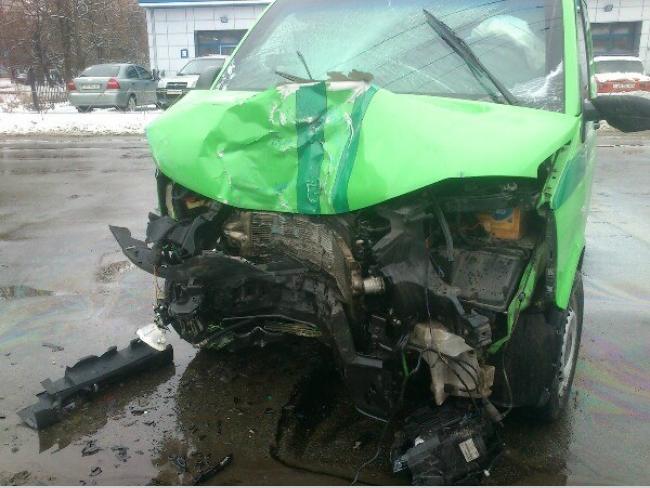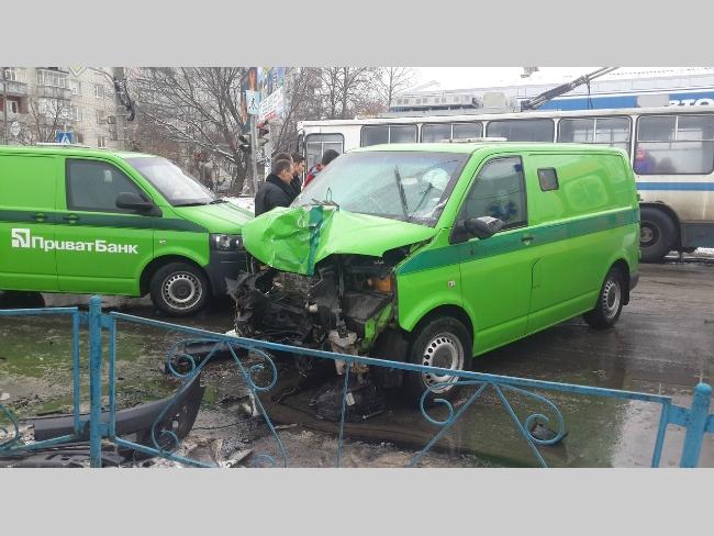 Сообщается, что автомобиль VolkswagenТ-5 – инкассаторская машина «ПриватБанка» – врезался в столб перед остановкой на рынке «Висла».