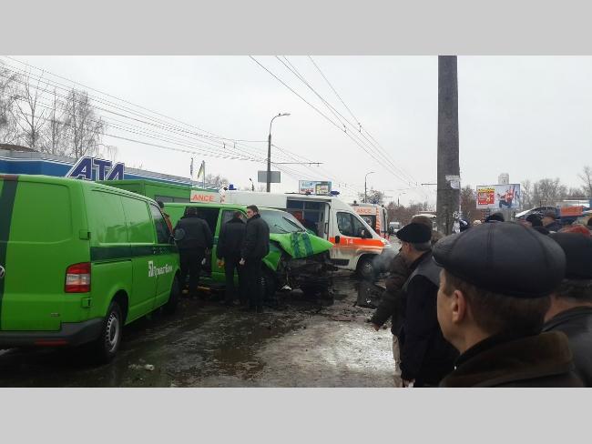 Накануне днем на перекрестке улиц Щорса и Музыкальной произошла авария, в результате которой серьезно пострадала инкассаторская машина «ПриватБанка» и только чудом уцелели люди.