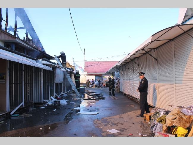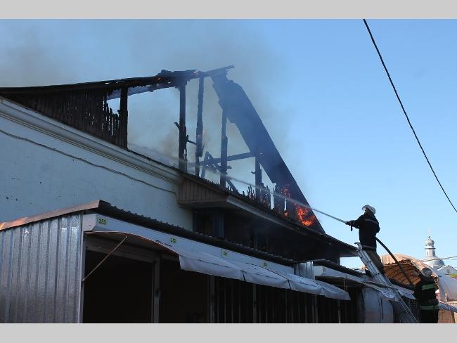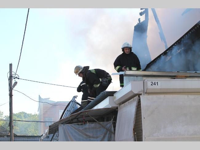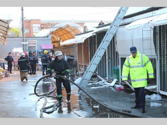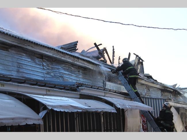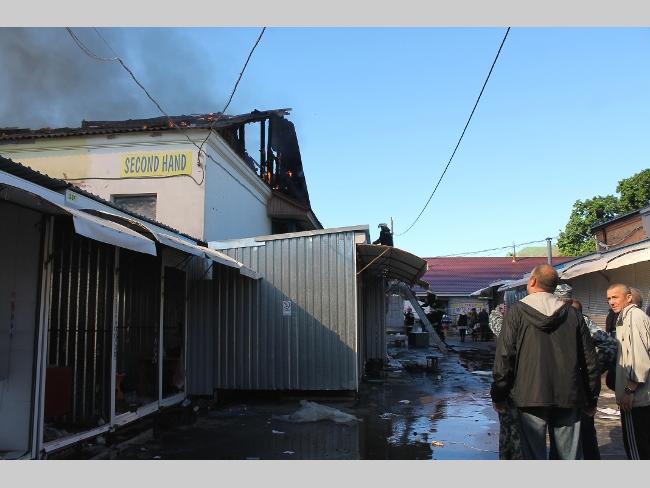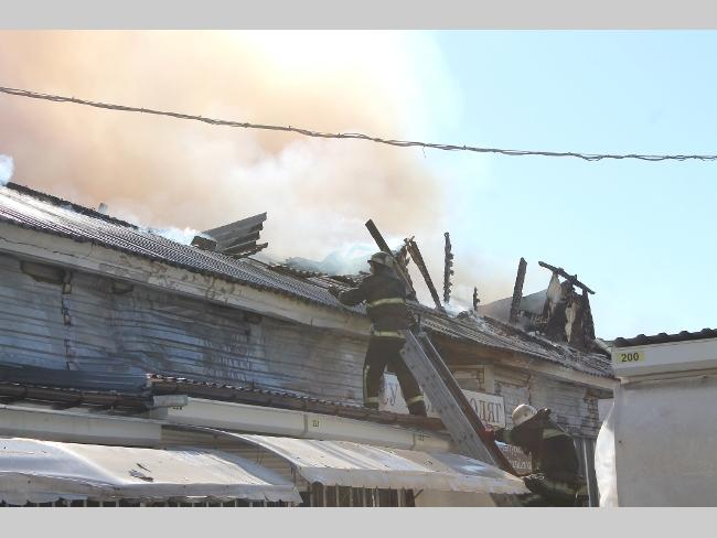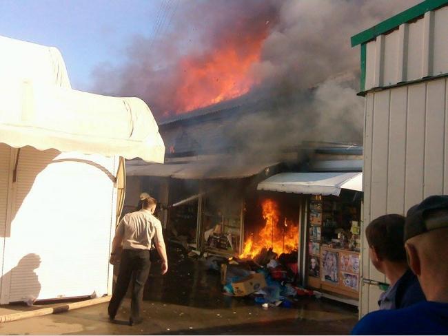 Горело старое здание – павильон, постройки 60-х годов. В нем в советское время торговали сельхозпродуктами, а сейчас его заняли предприниматели вещевого рынка. Да и сам павильон, словно виноградная гроздь, оброс вокруг маленькими бутиками частных предпринимателей.