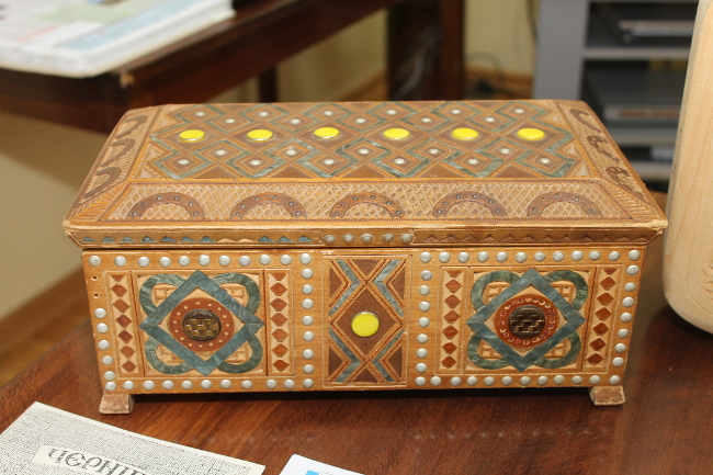 – Я з самого дитинства трохи займався різьбленням по дереву. Вирізав різні кришечки для глечиків, дощечки, а потім прийшов час мені служить в збройних силах. Служив я в Чернігівському авіаційному училищі, і нічого не знав про техніку виготовлення виробів з деревини, а почалося все з маленької шкатулочки. Я був художником в училищі, і трохи рибалив. Зламавши рейсшину, котра у мене була, зробив з неї маленьку коробочку для хробаків, а потім пофарбував її та намалював картинку і вийшла чудова шкатулочка, – розказує Микола Панько.