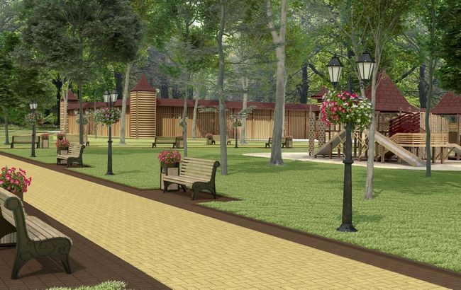 Старе покриття доріжок замінять, територію навколо озеленять. На пагорбі біля архіву проектант запланував встановити сходи. З’явиться освітлення – за планом встановлять не лише ліхтарі, а й наземні світильники для доріжок. Чавунні лави, які багато років служили містянам, хочуть відновити і встановити у парку. Недобудову – Дворянські зібрання, мають відгородити, аби вона не псувала вигляд.