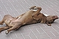 Настала пора летних отпусков. Нынешнее жаркое лето заставляет горожан искать прохладу у водоемов и на дачах. А куда деваться животным, которые живут в нашем городе рядом с нами? Проходя во вторник мимо городской кофейни «Шарлотка», наблюдал пса, который видимо, потерял надежду найти укрытие от летнего зноя