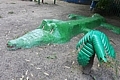 Детская площадка во дворе на улице Пятницкой, 72 привлекает к себе внимание всех, кто проходит мимо! Здесь, рядом с качелями и песочницей, стоят грибочки и деревянные зверюшки. А возле «халабуды» для детей постарше распластался зеленый крокодил…