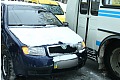 Сегодня, 9 февраля, около 13.00 возле магазина «Лагрос» произошла авария. Небольшая, но проблем городу доставила не мало, из-за дорожного инцидента на этом участке дороги возникла пробка. Автобус 1-го маршрута до того как произошло столкновение двигался в сторону «Мегацентра». Но узкие из-за снега и скользкие улицы не позволили автомобилю и автобусу правильно рассчитать безопасную дистанцию.
