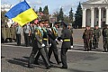 Проїхати через Красну площу сьогодні до обід було неможливо. Не пропускали навіть пішоходів. Міліціонер в формі пояснив – військові готуються до параду. Колони військових крокують головною площею обласного центру та віддають честь командирам. Так вони готують до Дня міста. Пройшли ніби непогано.