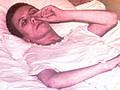 Передо мной фотографии Алисы. С мужем и сыном... Красивая, счастливая, молодая. А вот она в палате Черниговской горбольницы №2. Лежачая, в памперсе, худющая, килограммов 35. Коротко острижена, ведь на голове сделали две операции. Руки скрючены и трясутся. Бабуля постоянно втискивает ей в ладонь валик из полотенца, чтобы ока хоть как-то разминала руки. Но он выпадает. Есть пролежни. Она не может ни ходить, ни сидеть. Эту ужасную картину нельзя описать словами.