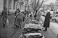 В два ряда торгующие выкладывают свой домашний скарб, среди которого можно найти старинные статуэтки, перстни, дефицитные в советское время книги, давно уже немодные туфли-лодочки, спицы, шерстяные нитки, кукол, разукомплектованные сервизы...