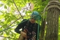 Олег Горбонос впевнено фіксує кріплення та готується до навісної переправи. У спортивному туризмі хлопець вже близько 7 років. За цей час він брав участь у багатьох змаганнях та навіть здобув призові місця. Сьогодні ж вперше після півторарічної перерви бере участь у відкритому чемпіонаті