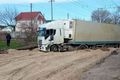 Рухаючись у бік державного кордону, водій фури проігнорував дорожні знаки, що на вулиці Малиновського тривають ремонтні роботи і проїзд автотранспорту цією вулицею заборонений.