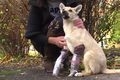 Обидві передні лапи Марти загіпсовані. Зооволонтерка Марина щодня ділиться з Мартою власним гардеробом. Одягає на травмовані ніжки власні шкарпетки. Навмисно обирає яскраві – так тварина не розгризає гіпс і радіє кольорам.