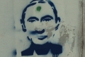 Вот такой трафаретный рисунок я заметил на стене одного из панельных домов по ул. Белова. Главный действующий персонаж на рисунке – одиозный президент РФ В.В.Путин. Зеленая точка на лбу у политика, по всей видимости