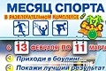 С 13 февраля по 11 марта боулинг-клуб "Базис" проводит акцию "Месяц спорта". Впервые в Чернигове для стимулирования здорового образа жизни и занятий спортом мы разыграем велосипед и другие спортивные призы.
