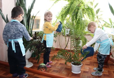 Софійку і Мишка застали за улюбленим заняттям. Діти зізнаються, що радіють, коли вихователь доручає їм таку відповідальну справу. Виконують її з особливою турботою, бо квіти вже стали невід’ємною частиною їхнього дитячого світу.