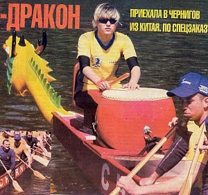 По Десне плавает необычная лодка, похожая на каноэ или большую байдарку. Носовая часть сделана в виде головы дракона, а корма — в виде хвоста. В хвосте стоит рулевой, а в носовой части за большим ударным инструментом, сидит девушка и задает ритм. Стало интересно, это развлечение или спорт? И можно ли прокатиться на драконе?