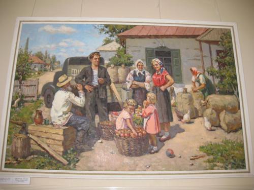 - Головним героєм цих робіт був, звичайно, народ, а основним споживачем – також звичайні люди, і це визначило напрямок «народності» у мистецтві, - рассказал Алексей Какало. - І дійсно художники працювали на заводах, на фабриках, на колгоспних полях і фермах, у трудових колективах, їздили на БАМ, у своїй творчості відштовхуючись від життя, а не якихось своїх фантазій. У цьому був позитивний момент, адже художники працювали з натури, удосконалювали свою майстерність. Це було мистецтво високого художнього ґатунку. Втім, воно ще не повністю оцінене, ще має пройти років 50, але весь світ вже звертає увагу на добу соцреалізму. Ця школа вже втрачена, зруйнована авангардними напрямками, вільною творчістю. Художники зайнялися пошуками форми, а в цих творах присутні і форма, і зміст.