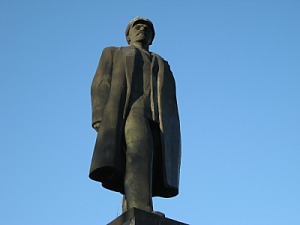 Нет, но «у ног Владимира Ильича», это – супер! Высший пилотаж! СУПЕР! Помните, у Пушкина (того самого, о котором тоже упоминается в материале «Кто уродует Чернигов?») в чудесном стихотворении «Анчар»: «И умер бедный раб у ног непобедимого владыки…» Ей-богу, смотрю на иллюстрацию каменного идола, которому коммунальщики ноги от краски отмывают и действительно верую в его непобедимость!